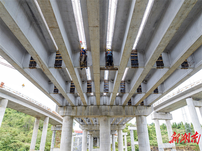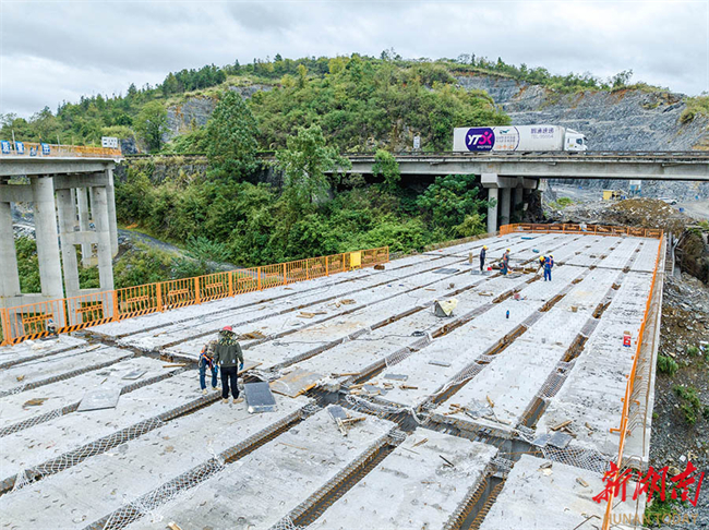 The photo, taken on October 21, shows workers hard at work on the construction site of the Jishou-Huaihua Expressway Jinping Interchange Hub in Jishou City. Upon opening to traffic, this project will significantly enhance the connectivity efficiency of the regional expressway network, improve the transportation conditions, and inject new momentum into the development of local economy. (Photo/Peng Jing)