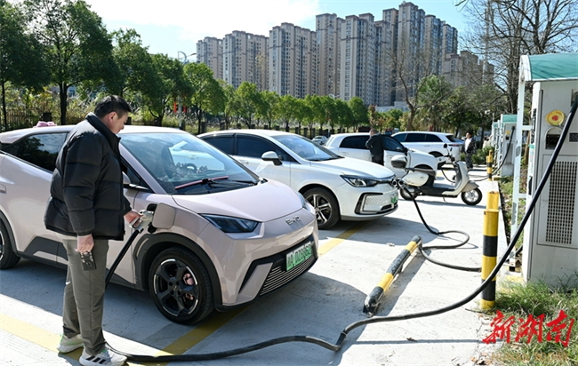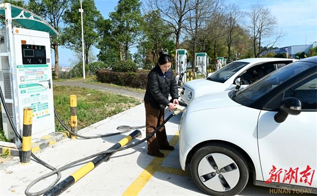 People charge new energy vehicles (NEVs) at a public charging station on Hebian Road, Huagu Neighborhood, Dongkou County on November 19. In recent years, the county authority has accelerated and enhanced the construction of new energy infrastructure. Charging stations have been built across public locations, including city streets, rural areas, scenic spots, and residential communities, forming an extensive charging network that supports green travel. (Photo/Teng Zhizhong)
