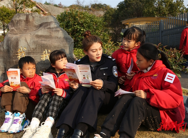 On December 3, a teacher imparts constitutional knowledge to students at Zhuquan Primary School in Jiahe County, ahead of the 12th National Constitution Day which falls on December 4. Various activities are being held across Hunan Province to promote public awareness of the Constitution. (Photo/Huang Chuntao)