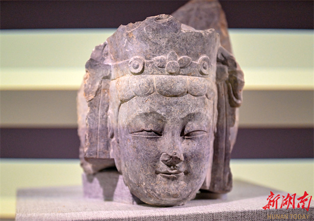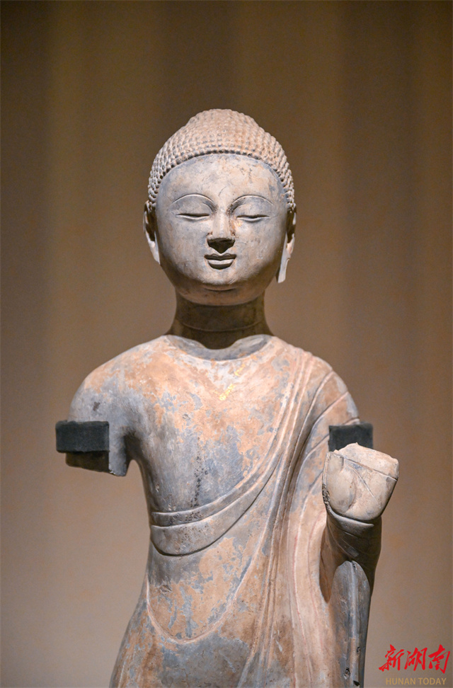 An exquisite Qingzhou-style Buddha statue of the Northern Dynasties on display. (Photo/Guo Liliang, Hunan Daily)