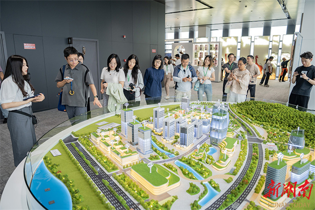 The photo above, taken on June 18, shows the newly-operated Yueyang China-Africa Economic and Trade Pilot Zone Headquarters Base. The base integrates such functions as high-end office spaces, achievement exhibitions, and business negotiation areas. It will further promote economic and trade exchanges and cooperation between Yueyang and African countries, advancing industrial agglomeration, innovating cooperation mode, and optimizing the business environment in greater depth and across broader areas.