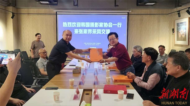 The Korea Photographers Association held an exchange activity with its counterpart in Zhangjiajie, and presented 12 photographic works of South Korea's natural heritages to Zhangjiajie's World Cultural Heritage archieves, which house images and physical objects.