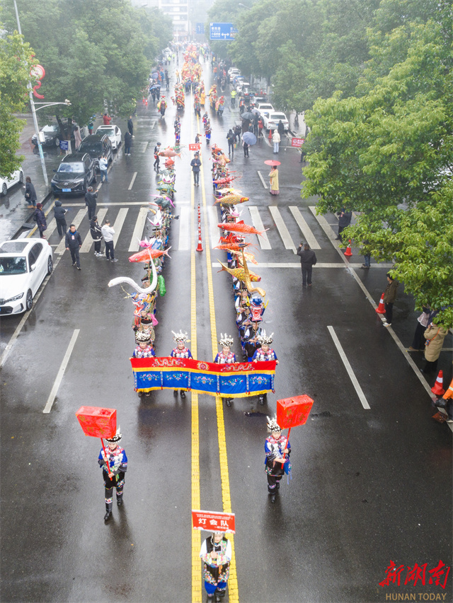 The 2025 Intangible Cultural Heritage-themed Spring Festival of Wuling Mountain (Xiangxi) Tujia and Miao Ethnic Cultural and Ecological Protection Zone and the Qianzhou Spring Fair are held during the Spring Festival holiday. A 1,000-meter-long dragon consisting of 50 lanterns and performed by 15 teams winds its way through the streets of Jishou City, celebrating the Spring Festival and sending festive greetings to residents and tourists. (Photo/Liang Yonghong)