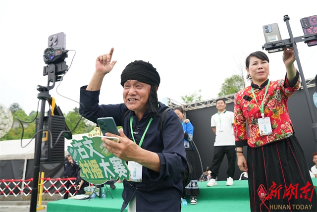 On April 20, the 2025 Tea Ancestor Festival and the Hunan (Guzhang) Tea Culture Tourism Festival opened at the Qifenghu Square in Guzhang County. Themed "Promoting Tea Ancestor Culture, Advancing Tea-Tourism Integration," the event fully showcased Guzhang's achievements in integrated development of the tea industry and tourism through industrial promotional activities, cultural performances, and a signing ceremony on business projects. The event injected new vitality into the high-quality development of Hunan's tea industry. The photo shows a local livestreamer promoting tea leaves during a rural livestreaming competition at the Qifenghu Square in Guzhang County. (Photo/Gu Pengbo and Liu Shiqi, Hunan Daily)