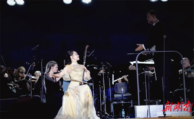 Traditional Chinese instruments including erhu, pipa, sheng, and guzheng were spotlighted with the performances by Hunan musicians and the Russian Philharmonic Orchestra. The audience was enchanted by the erhu concerto "the Great Wall" and Tchaikovsky's classic pieces, as well as the profound cultures of Russia and China, showcased through Russian poet Pushkin's poems and Chinese poems. The friendship of the two peoples was further enhanced during the concert. The Russian Philharmonic Orchestra performed Hunan famous folk tune "Liuyang River". Accompanied by erhu, the song "The Night of Moscow Suburb" was performed in Russian and Chinese.
