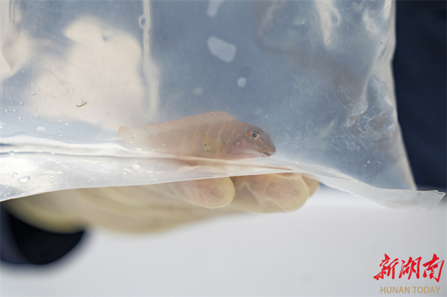 Over 800 ornamental fish from Africa were freighted by air from Addis Ababa, capital of Ethiopia, and arrived at Changsha Huanghua International Airport on March 16. After completing customs clearance procedures, the fish were transported to a designated quarantine site. They will undergo a 14-day quarantine peroid before being supplied to the markets. This marks the first import of African ornamental fish through a Hunan port. The photo shows the ornamental fish from Africa swimming in water at the international cargo station of Changsha Huanghua International Airport. (Photo/Gu Pengbo, Hunan Daily)