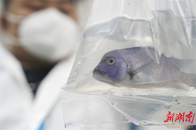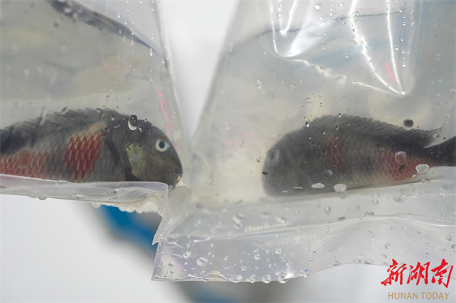 Over 800 ornamental fish from Africa were freighted by air from Addis Ababa, capital of Ethiopia, and arrived at Changsha Huanghua International Airport on March 16. After completing customs clearance procedures, the fish were transported to a designated quarantine site. They will undergo a 14-day quarantine peroid before being supplied to the markets. This marks the first import of African ornamental fish through a Hunan port. The photo shows working staff put the ornamental fish into a quarantine pool at the demonstration quarantine fishing ground for the African ornamental fish. (Photo/Gu Pengbo, Hunan Daily)