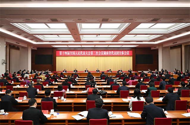 The Hunan delegation to the second session of the 14th National People's Congress (NPC) held its third plenary meeting in Beijing on the afternoon of March 4, 2024, to deliberate the government work report.
