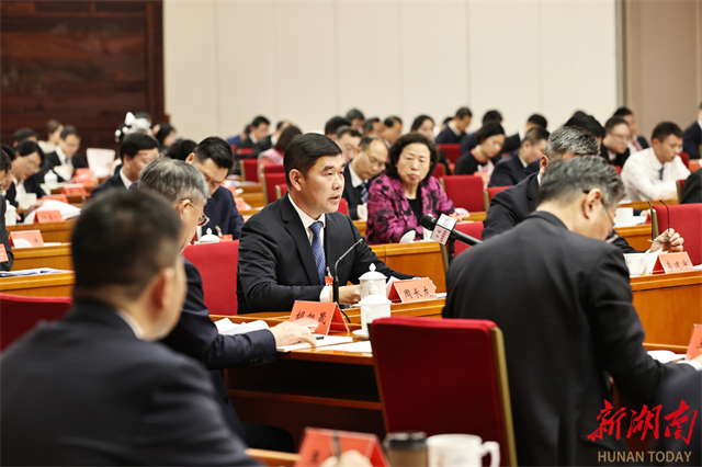 On the afternoon of March 5, Shan Yang (M), a Hunan-based member of the CPPCC National Committee, shared his views at a group discussion. (Photo/Gu Pengbo, Hunan Daily)