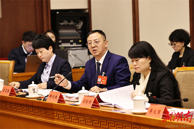 On the afternoon of March 6, Deputy Chong Yanmin presented his opinions at a group discussion. (Photo/Liu Shangwen, Hunan Daily)