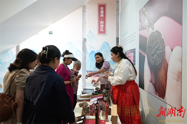 On May 24, the 7th Hunan-Hubei-Jiangxi-Anhui Intangible Cultural Heritage Joint Exhibition was launched in Yueyang. Themed "Our Festival, the People's Intangible Cultural Heritage," the event brought together more than 200 intangible cultural heritage (ICH) representative items. The initiative aims to discuss new vitality in ICH preservation, explore new pathways for integrated development, and create new experiences in cultural and tourism integration. (Photo/Fu Cong)