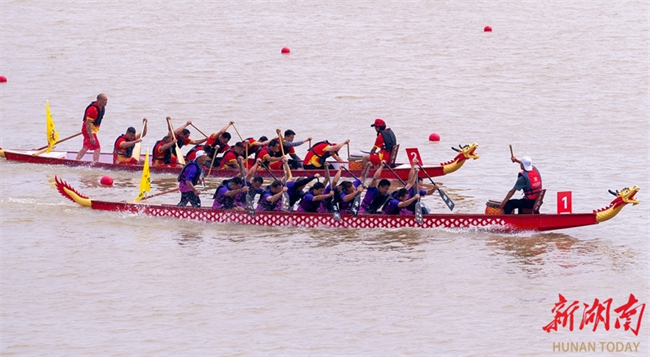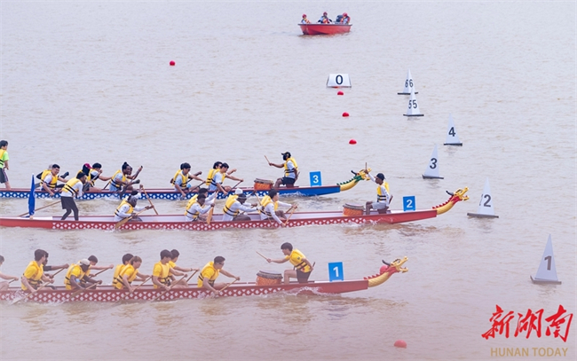 The 2025 China Miluo River International Dragon Boat Invitational Tournament, also the 2nd Dragon Boat Super League, kicked off in Miluo, Yueyang on May 24. Twelve international and 12 local dragon boat teams competed in 200-meter and 500-meter straight races respectively. The photo shows dragon boat teams racing in the tournament at the Miluo River International Dragon Boat Racing Center on that day. (Photo/Tong Zhenxi, Chen Meng, and Liu Shiqi, Hunan Daily)