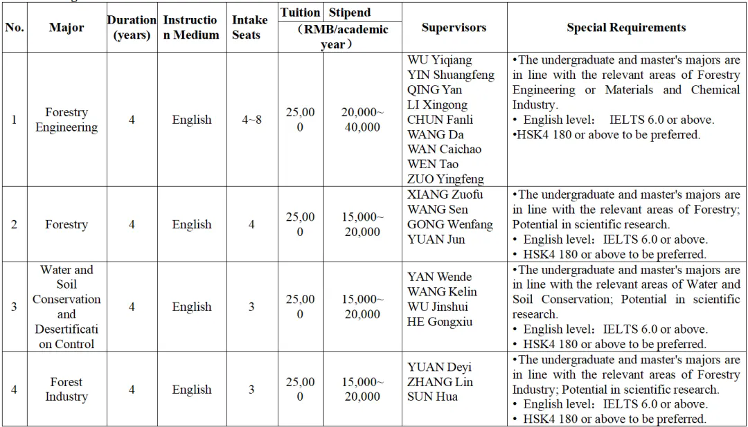 1. Applicants should be non-Chinese citizens, no criminal record, physically and mentally healthy, excellent grades, strong academic background, scientific research and innovation ability; international students who are now in China do not belong to the “Three-illegals” (illegal entry, illegal residence, illegal employment), and voluntarily abide by the laws of China and the regulations of CSUFT.