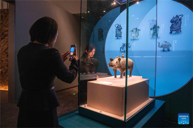 Visitors view an exhibit at the MICA Art Museum in Changsha, central China's Hunan Province, Feb. 18, 2025. (Xinhua/Chen Sihan)