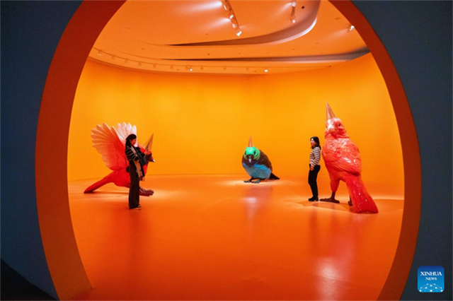 Visitors take photos with an exhibit at the MICA Art Museum in Changsha, central China's Hunan Province, Feb. 18, 2025. (Xinhua/Chen Sihan)