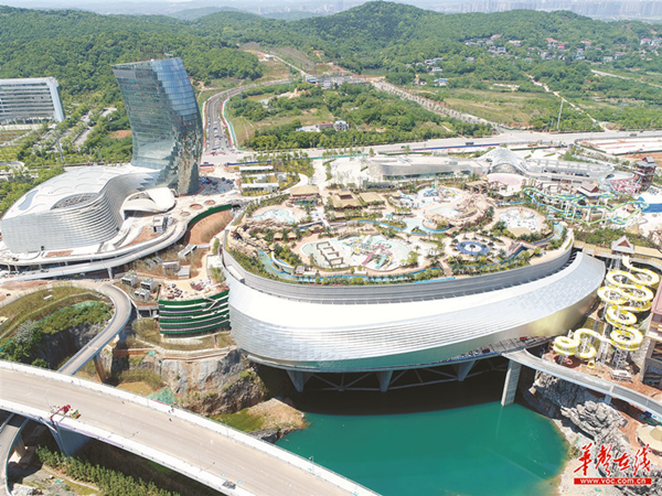 The Xiangjiang Joy Town Amusement Park is Hunan's first world-class large comprehensive tourist project. It was built above an abandoned pit more than 100 meters deep in Changsha's Pingtang subdistrict as part of efforts to restore the environment and boost urban development.
