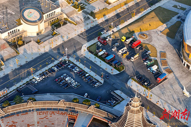 The photo shows a free parking lot operating in an orderly fashion at Sasui Square in Tongdao Dong Autonomous County. In recent years, the county authority has implemented people-centered initiatives such as building free parking facilities and bus services access to all villages, so as to effectively address public transportation difficulties and enhance residents' sense of gain. (Photo/Li Shangyin)