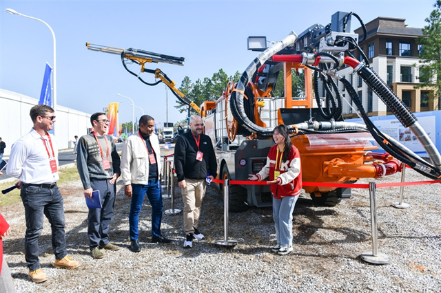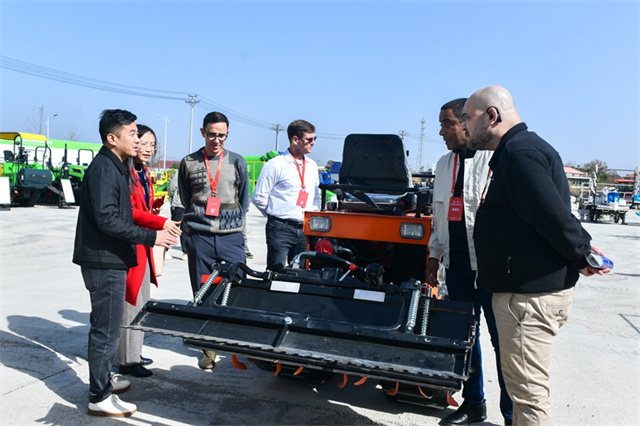 The photo shows foreign buyers discussing agricultural machinery procurement with exhibitors at the expo. (Photo/Wu Yonghua)