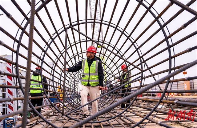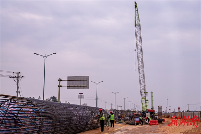 The photo, taken on December 4, shows construction workers undergoing final quality checks on components for the G354 Huangxing Avenue to Airport Central Axis Avenue Section (Xiangfu East Road Extension) Project. The entire project is constructed in accordance with Class I highway specifications, featuring a two-way six-lane main road with a designed speed of 80 km/h. Upon completion, the project will effectively optimize the regional trunk highway network, enhance the traffic capacity and service level of national highways, relieve the transit traffic pressure in Changsha's urban areas, and boost regional economic development. (Photo/Tong Zhenxi and Yu Miao, Hunan Daily)