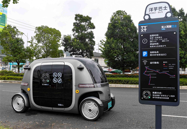 An autonomous bus runs in Guiyang, southwest China's Guizhou province. (Photo/Jia Zhi)