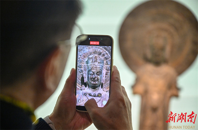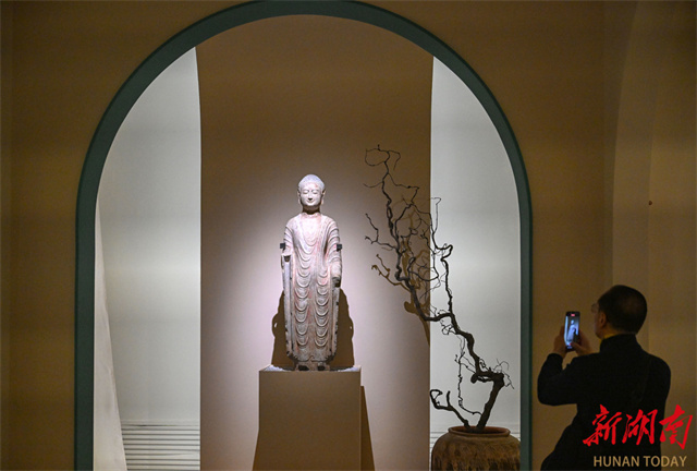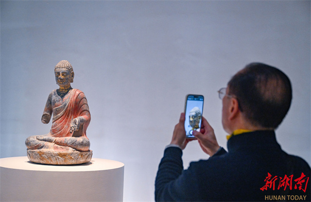 An art exhibition featuring Qingzhou-style Buddha statues kicked off at the Hunan Museum on November 21. The exhibition brings together 67 exquisite Buddha statues of the Northern Dynasties (386-581) from multiple cultural institutions, including the Qingzhou Museum, the Zhucheng Museum, and the Shandong Museum. With "Oriental Aesthetics" as its core theme, the exhibition systematically traces the artistic lineage of Qingzhou-style Buddha statues from an academic perspective. Through innovative exhibition design, digital displays, educational activities, and cultural and creative product development, it creates a comprehensive cultural experience that bridges the past and present while blending aesthetics and spirituality. It invites visitors to explore the aesthetic philosophy behind those eternal smiles. (Photo/Guo Liliang, Hunan Daily)