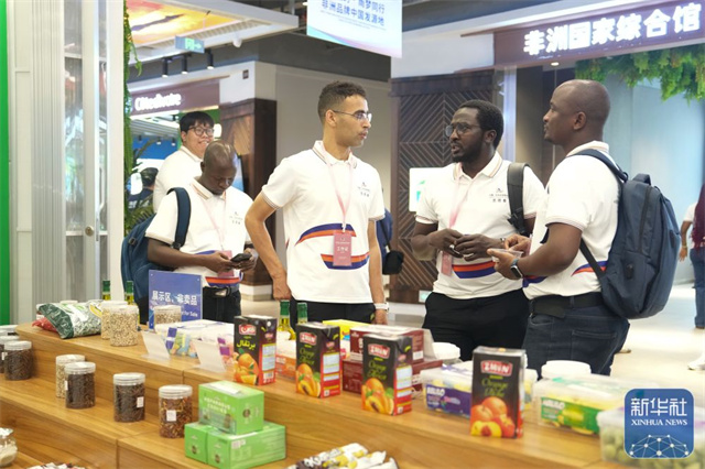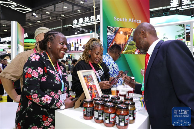 The photo, taken on June 12, shows people visiting the booth of South Africa at the Changsha International Convention and Exhibition Center. (Photo/Wang Jingqiang, Xinhua)