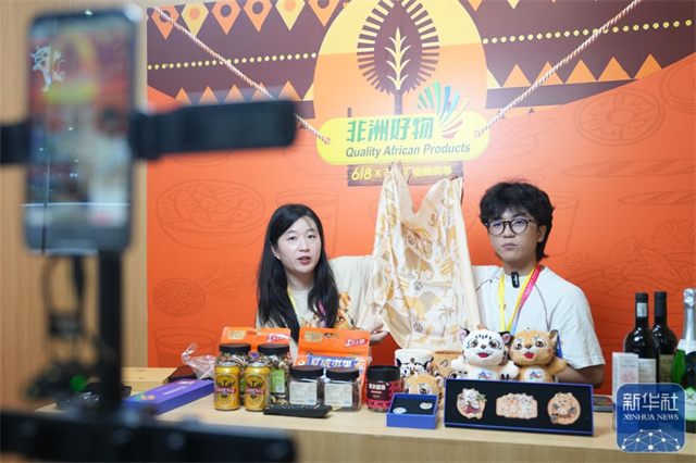 The photo, take on June 12, shows livestreamers promoting products from Africa at the Changsha International Convention and Exhibition Center. (Photo/Xue Yuge, Xinhua)