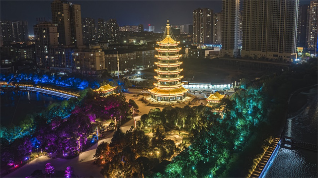 The photo, taken on the evening of August 11, shows the lighting system of Heming Island Scenic Area tested in Hecheng District, Huaihua City. As a key project of the 5th Hunan Tourism Development Conference, the scenic area will focus on creating a nighttime wonderland, presenting visitors with a spectacular light and shadow feast.