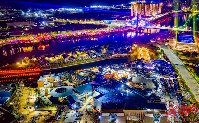 On the evening of August 31, the Yushuwan Cultural, Tourism and Commercial Complex Project by the Wushui River in Huaihua City was brilliantly lit, with construction workers racing against time to put the final touches on the project. In preparation for the upcoming 5th Hunan Tourism Development Conference, Huaihua has focused on developing a series of new cultural and tourism landmarks, including the Yushuwan Complex, the ASEAN Ten-Nation Themed Pavilion, and Tianwen Island. Currently, all projects have entered the final phase of construction. (Photo/Tian Wenguo)