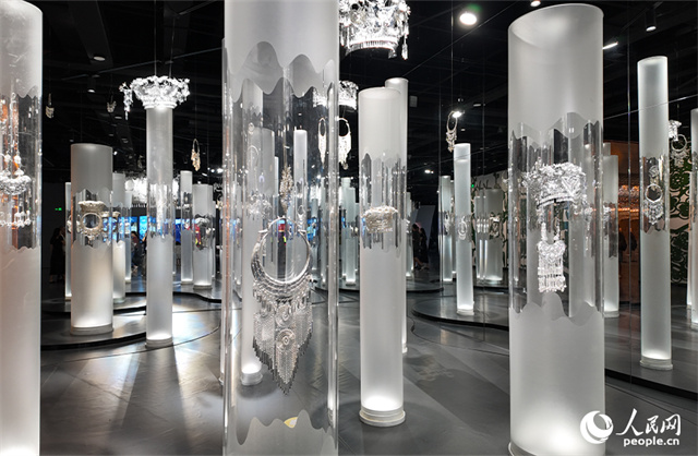 Silver ornaments of the Dong ethnic group on display. (Photo/Huang Zhuo, People's Daily)