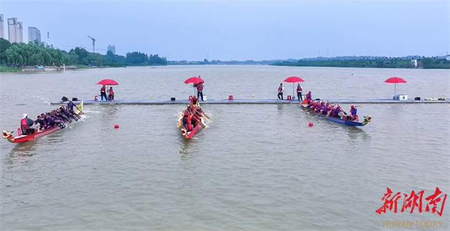 The 2025 China Miluo River International Dragon Boat Invitational Tournament, also the 2nd Dragon Boat Super League, kicked off in Miluo, Yueyang on May 24. Twelve international and 12 local dragon boat teams competed in 200-meter and 500-meter straight races respectively. The photo shows dragon boat teams racing in the tournament at the Miluo River International Dragon Boat Racing Center on that day. (Photo/Tong Zhenxi, Chen Meng, and Liu Shiqi, Hunan Daily)