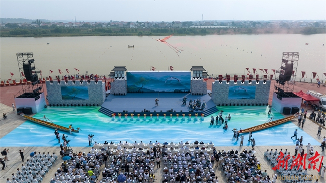 The 2025 China Miluo River International Dragon Boat Invitational Tournament, also the 2nd Dragon Boat Super League, kicked off in Miluo, Yueyang on May 24. Twelve international and 12 local dragon boat teams competed in 200-meter and 500-meter straight races respectively. The photo shows the opening ceremony of the tournament at the Miluo River International Dragon Boat Racing Center. (Photo/Tong Zhenxi, Chen Meng, and Liu Shiqi, Hunan Daily)