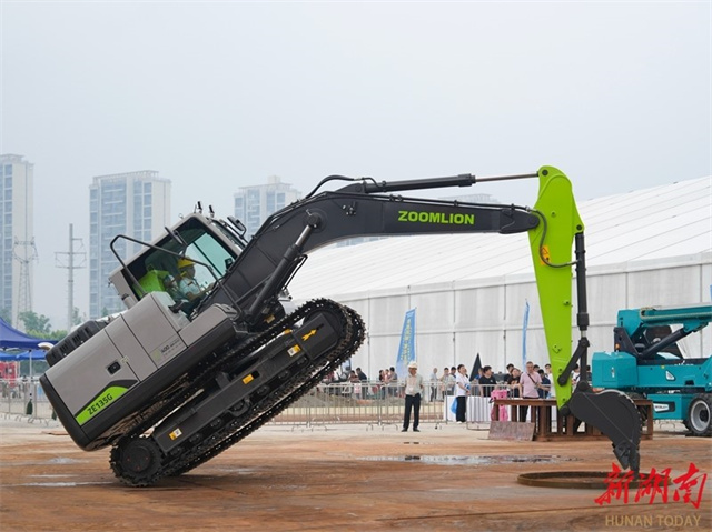 The 4th Changsha International Construction Equipment Exhibition (CICEE) Kicked off in Changsha on May 15. The expo theme was "High-end, Intelligent, and Green—A New Generation of Construction Machinery, Emergency Rescue Equipment, Mining Equipment, and Agricultural Machinery." With an exhibition area of 300,000 square meters, the expo attracted 1,806 enterprises and presented over 20,000 exhibits. In particular, more than 1,500 new products and new technologies made their debut. The photo shows an excavator dancing during the expo at the Changsha International Convention and Exhibition Center. (Photo/Gu Pengbo, Hunan Daily)