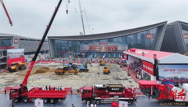 The 4th Changsha International Construction Equipment Exhibition (CICEE) Kicked off in Changsha on May 15. The expo theme was "High-end, Intelligent, and Green—A New Generation of Construction Machinery, Emergency Rescue Equipment, Mining Equipment, and Agricultural Machinery." With an exhibition area of 300,000 square meters, the expo attracted 1,806 enterprises and presented over 20,000 exhibits. In particular, more than 1,500 new products and new technologies made their debut. The photo shows operators demonstrating construction machinery at the Sany Group booth in the Changsha International Convention and Exhibition Center. (Photo/Gu Pengbo, Hunan Daily)