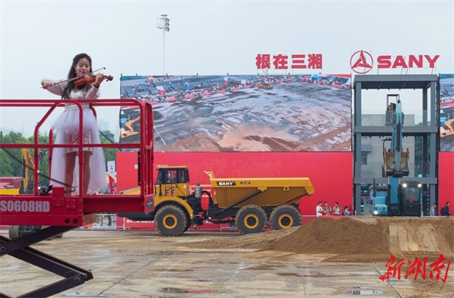The 4th Changsha International Construction Equipment Exhibition (CICEE) Kicked off in Changsha on May 15. The expo theme was "High-end, Intelligent, and Green—A New Generation of Construction Machinery, Emergency Rescue Equipment, Mining Equipment, and Agricultural Machinery." With an exhibition area of 300,000 square meters, the expo attracted 1,806 enterprises and presented over 20,000 exhibits. In particular, more than 1,500 new products and new technologies made their debut. The photo shows a live violin performance during the construction machinery show at the Changsha International Convention and Exhibition Center. (Photo/Gu Pengbo, Hunan Daily)