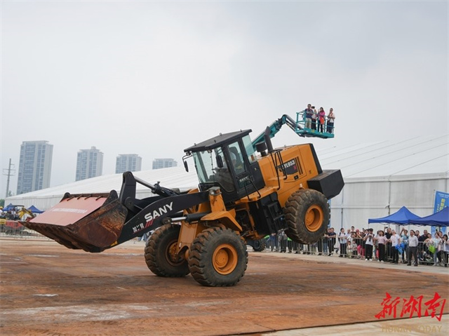 The 4th Changsha International Construction Equipment Exhibition (CICEE) Kicked off in Changsha on May 15. The expo theme was "High-end, Intelligent, and Green—A New Generation of Construction Machinery, Emergency Rescue Equipment, Mining Equipment, and Agricultural Machinery." With an exhibition area of 300,000 square meters, the expo attracted 1,806 enterprises and presented over 20,000 exhibits. In particular, more than 1,500 new products and new technologies made their debut. The photo shows a loader dancing during the expo at the Changsha International Convention and Exhibition Center. (Photo/Gu Pengbo, Hunan Daily)
