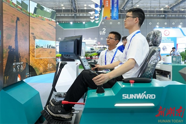 The 4th Changsha International Construction Equipment Exhibition (CICEE) Kicked off in Changsha on May 15. The expo theme was "High-end, Intelligent, and Green—A New Generation of Construction Machinery, Emergency Rescue Equipment, Mining Equipment, and Agricultural Machinery." With an exhibition area of 300,000 square meters, the expo attracted 1,806 enterprises and presented over 20,000 exhibits. In particular, more than 1,500 new products and new technologies made their debut. The photo shows an exhibitor demonstrating a simulation-based training system at the Changsha International Convention and Exhibition Center. (Photo/Gu Pengbo, Hunan Daily)