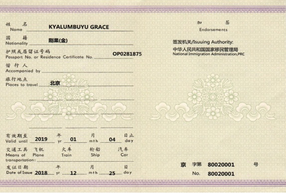 Approved and issued travel permits for foreigners shall be collected by the applicants in person at the relevant exit-entry administration authority of public security organs with the acceptance receipt.