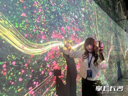 Serving as a window into the New Area's image, the Hunan Xiangjiang New Area City Gallery integrates technologies like digital twin and VR experience to vividly showcase the integration of industry, city, people, and culture. As the delegation explored, they were captivated by scenarios such as a digital scene of Yuelu Academy's gate, a cube-shaped 3D city art installation, and naked-eye 3D shows. In the green-benchmark interactive zone, waves of azalea flowers bloomed at their fingertips through gesture recognition, and the waters of the Xiangjiang River appeared to ripple beneath their feet as they stepped on the projected floor surface. "This is my second visit to Changsha—the first was 30 years ago. Seeing how the city has risen, with so many advanced technologies, makes me truly happy," said a senior reporter from Singapore's Fortune Times.