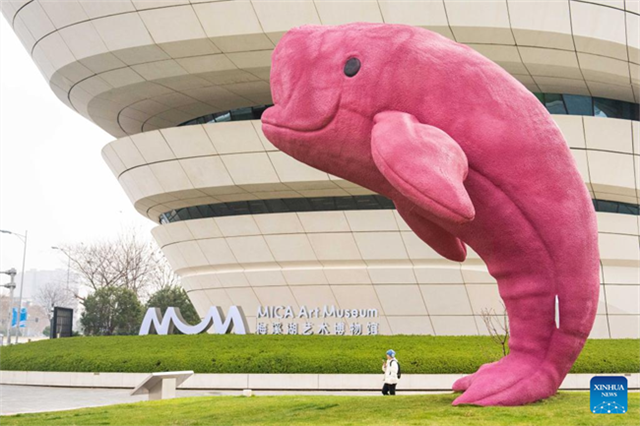 Visitors take photos with an exhibit at the MICA Art Museum in Changsha, central China's Hunan Province, Feb. 18, 2025. (Xinhua/Chen Sihan)