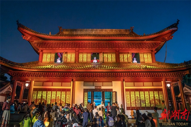 The Jiangtian Muxue Cultural Park opened to the public at the Orange Isle Scenic Area on the evening of November 6. An art performance featuring the park was staged that night, highlighting characters and stories in the Song Dynasty (960-1279). The show is enhanced by technologies that create stunning effects, including sound, light, water, fog, and electricity, making it a new experiential space on Orange Isle. (Photos/Gu Pengbo, Hunan Daily)