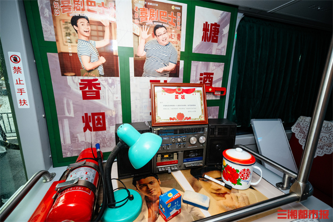 The bus was modified from a sightseeing double-decker. Its lower deck features a retro theme, creating an ideal spot for appreciating Changsha's night views and taking photos. The upper deck is a comedy show stage, where passengers can enjoy live improv shows and may even have the opportunity to join in.
