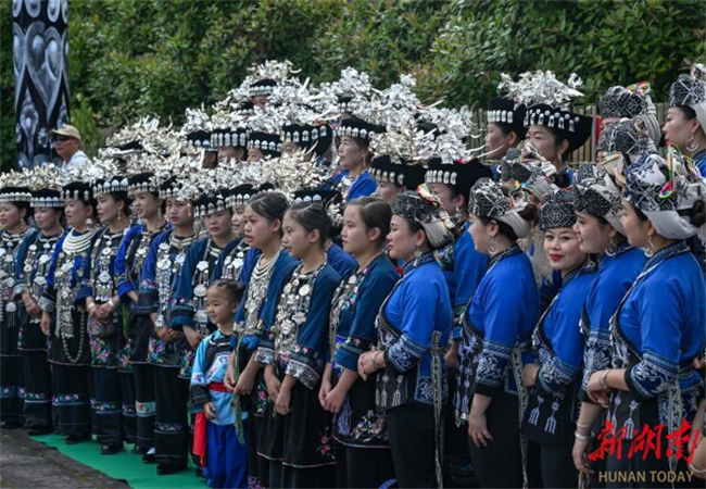 Miao people chorus traditional Miao songs at the Aizhai Wonder Scenic Area on May 5. (Photo/Guo Liliang and Chen Sheng'ai, Hunan Daily)
