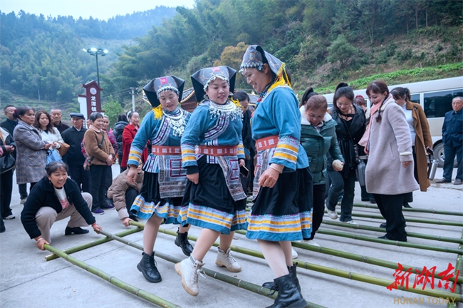 Villagers perform the traditional bamboo pole dance at Lingjiao Village, Longtan Town, Xupu County on November 17. That day was the 28th day of the ninth month in the Chinese lunar calendar, marking the Jiu Ba Festival of the Yao ethnic people. Villagers got together happily, enjoying the bustling atmosphere of various folk celebrations, such as making ciba and tofu, and singing folk songs. (Photo/Lei Wenlu and Chen Dasen)