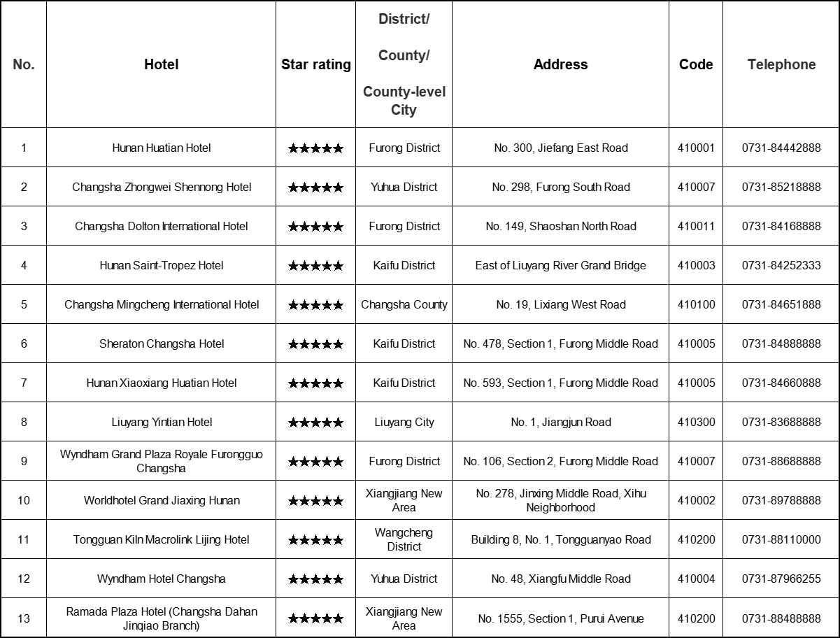 Chinese source: official website of Changsha Municipal Bureau of Culture, Tourism, Radio and Television