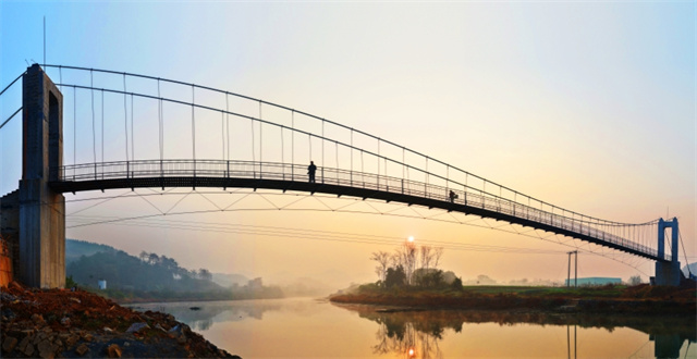 Recently, the flexible suspension bridge in Huangjia Village, Tanping Town, Jiahe County has entered the final stage of construction. Upon completion, this 86-meter-long, 2-meter-wide livelihood project will significantly improve transport and farming conditions for villagers. It will also connect urban and rural development spaces, creating a new highlight for rural tourism. (Photo/Huang Chuntao)