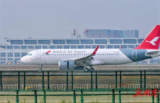 A new Airbus A320NEO aircraft, numbered B-32Q6, landed at Changsha Huanghua International Airport at 10:52 on the morning of December 10. With its addition, the Air Travel has expanded its fleet size to 17 aircrafts. This new aircraft accommodates 186 seats in an all economy-class cabin. It will be put into service for the winter flight season and the Spring Festival travel rush in the coming year. (Photo/Xu Xing, Hunan Daily)